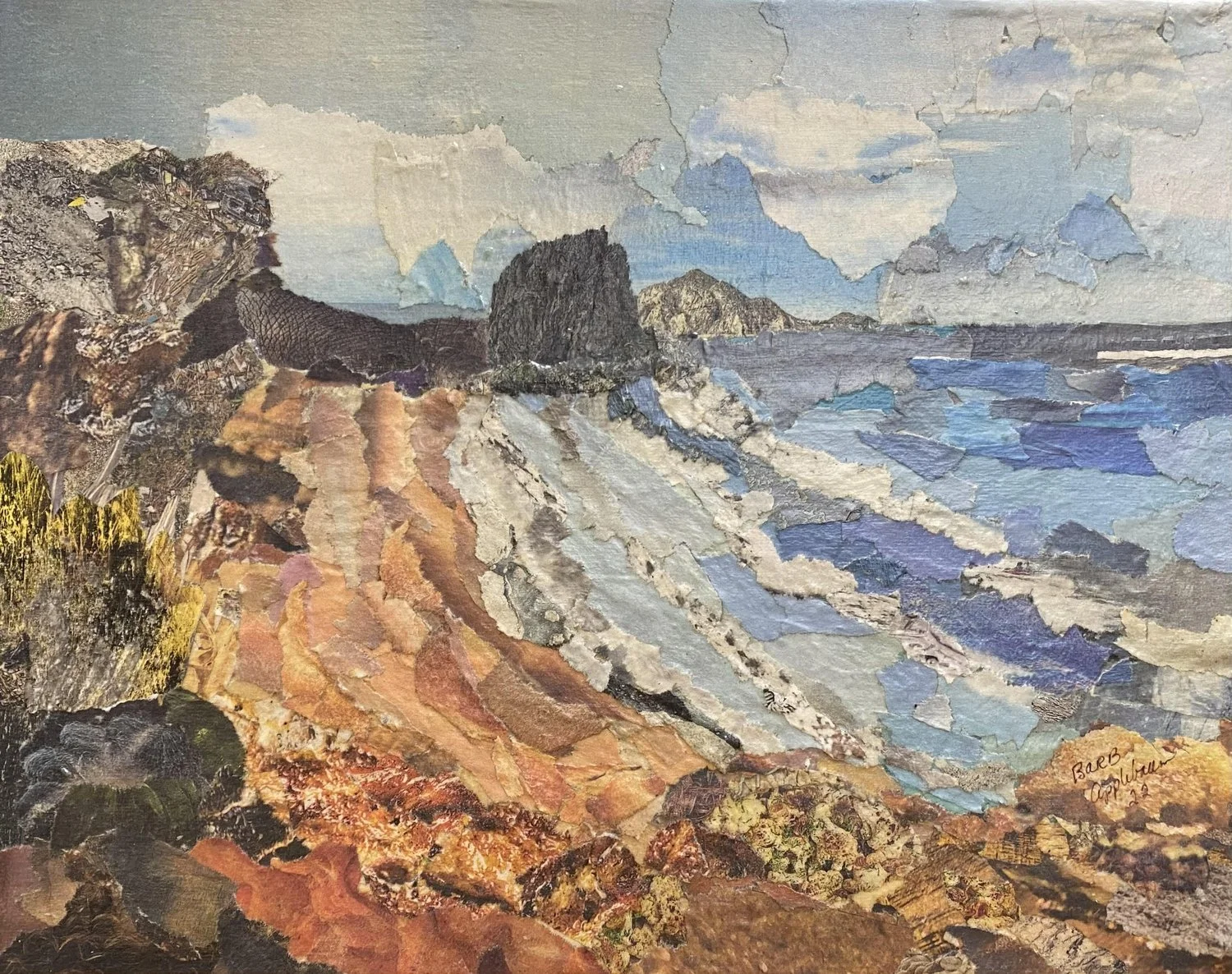 Susan developed an interest in collage after taking a class and joining a collage club in 2023. She uses paper, paint and other media to create ‘scenes’ of places she has hiked. Susan is an artist in the Re.Imagine Gallery in Fairview, NC where three of her oil paintings are on display. Susan also has an oil painting in the Asheville Strong Exhibition at the Asheville Art Museum until May 5, 2025.