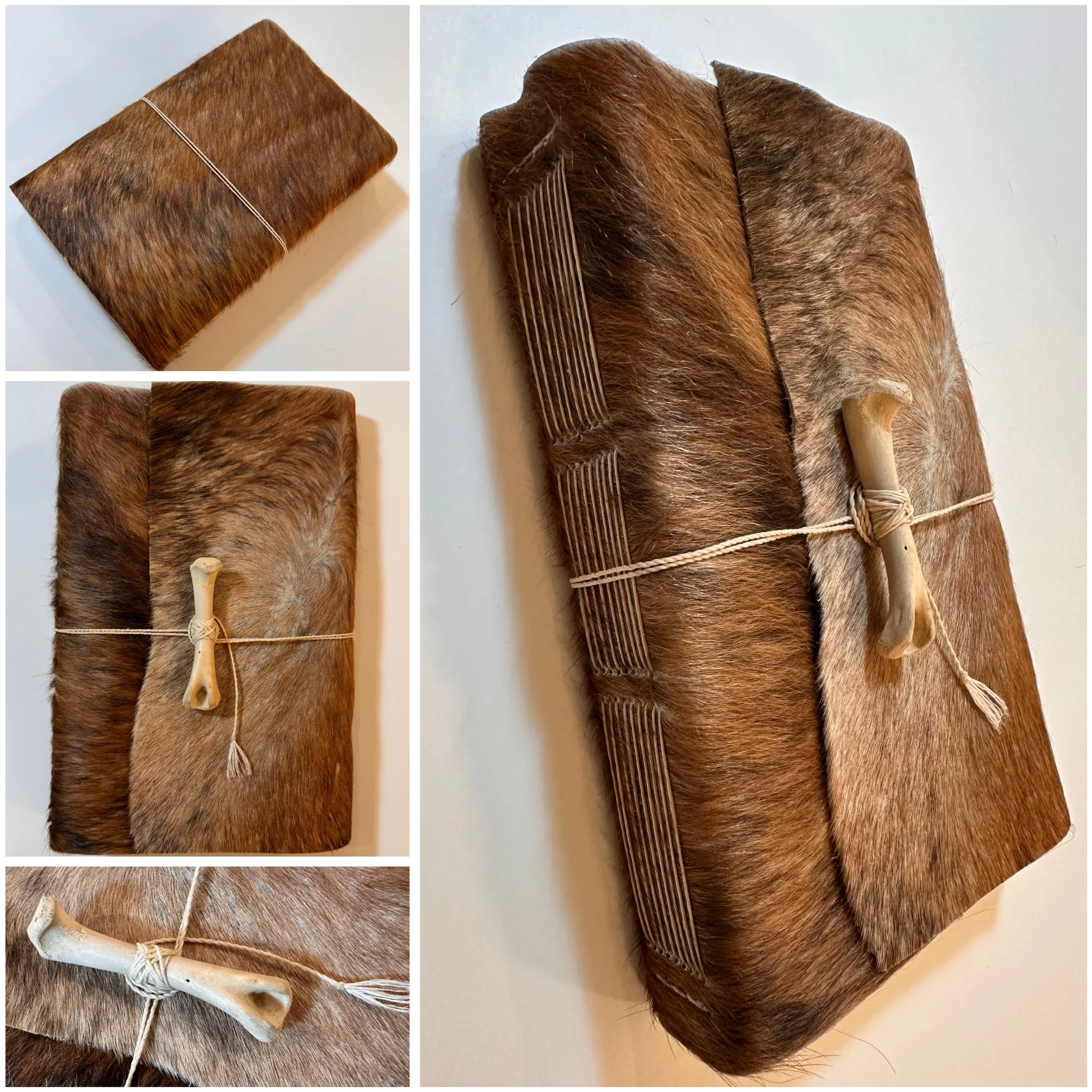 Deer skin, found bone, waxed linen thread, Southworth fine paper